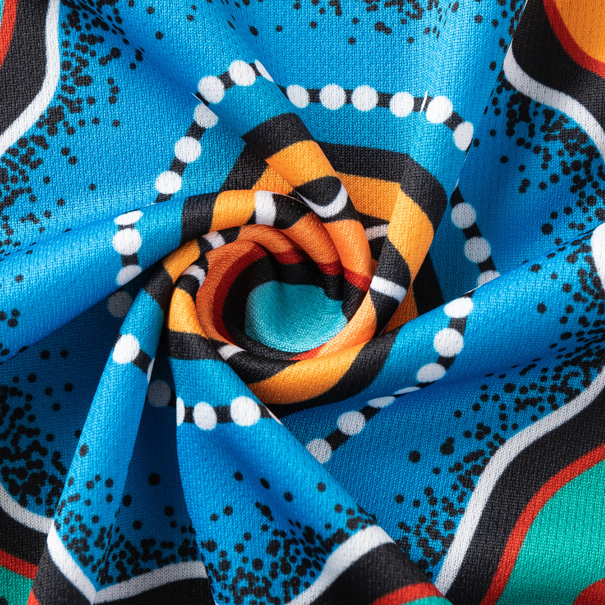 - This colourful rugby shirt features bold blue and yellow indigenous patterning.