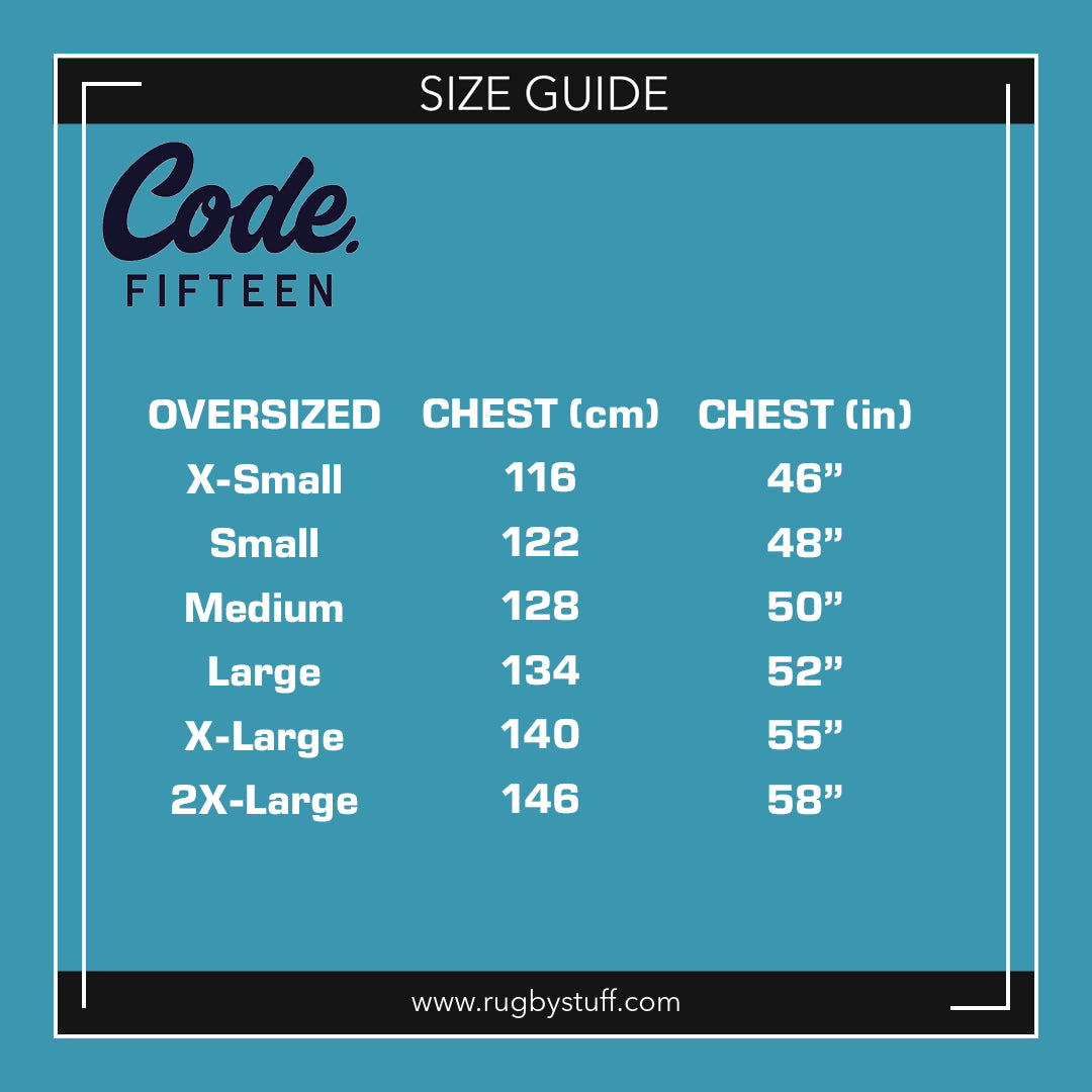 Designed by Code Fifteen, the new premium leisure rugby brand, this oversized hoodie pairs a wide, double‑layered hood with a relaxed, boxy shape and straight hem. The 450GSM organic brushed fleece gives it a heavyweight, ultra‑soft feel that stands out from the first wear.