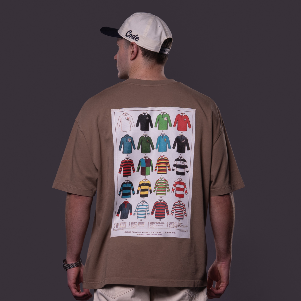 On the front, you’ll find the clean, ‘Code Fifteen’ chest logo. Turn around and the back hits you with a bold graphic celebrating vintage rugby jerseys - a nod to the sport’s roots, reimagined for today.