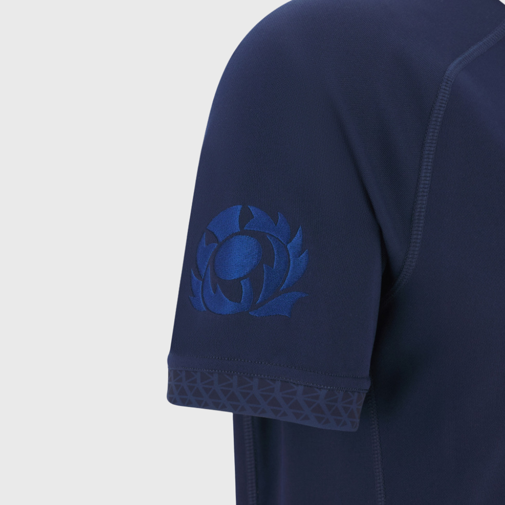 - Team Crest: The vintage Scotland thistle sits prominently over the heart.